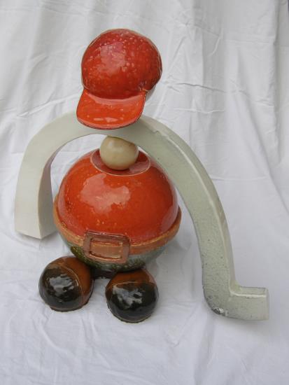 La scultura in ceramica "Il golfista" fa parte delle "sculture dinamiche". E' costituita da due elementi principali che possono ruotare a piacere ottenendo svariate configurazioni. Se c'e' il sole e' possibile proteggere "Il golfista" con i suoi berretti....